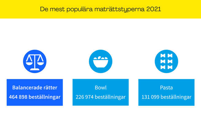 Svaret Àr kyckling - tÀtt följt av vegetariskt. De tre populÀraste proteinkÀllorna under 2020 (och under de tre första mÄnaderna av 2021) Àr: