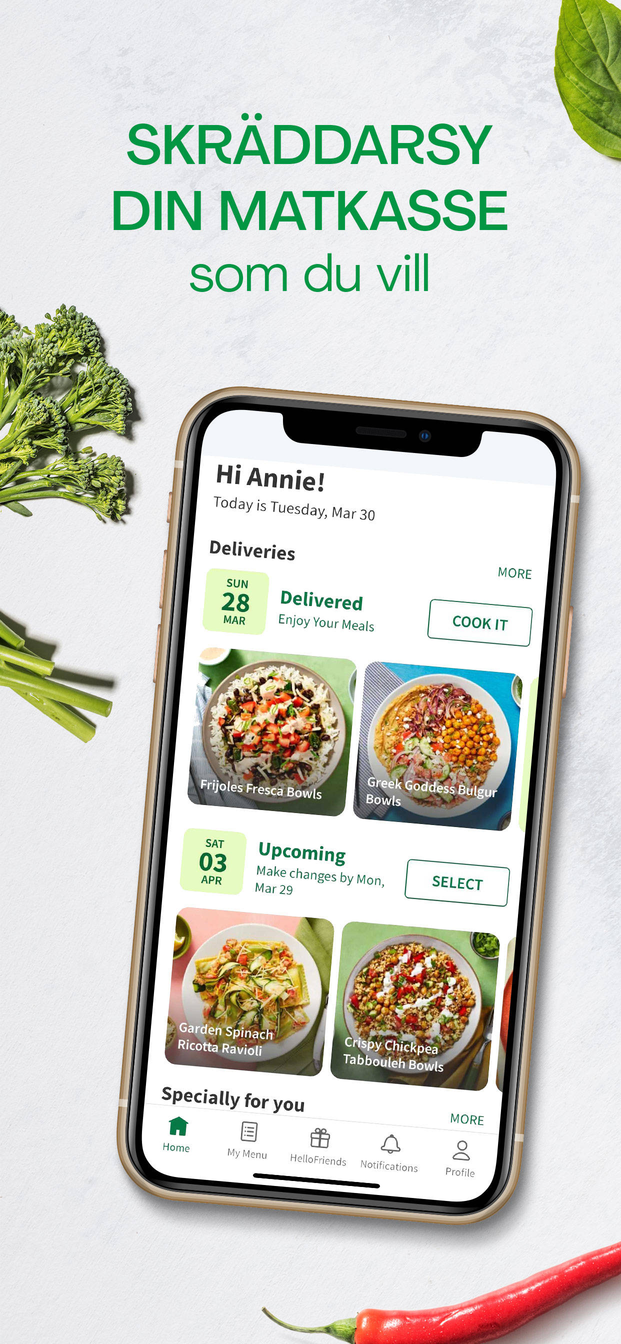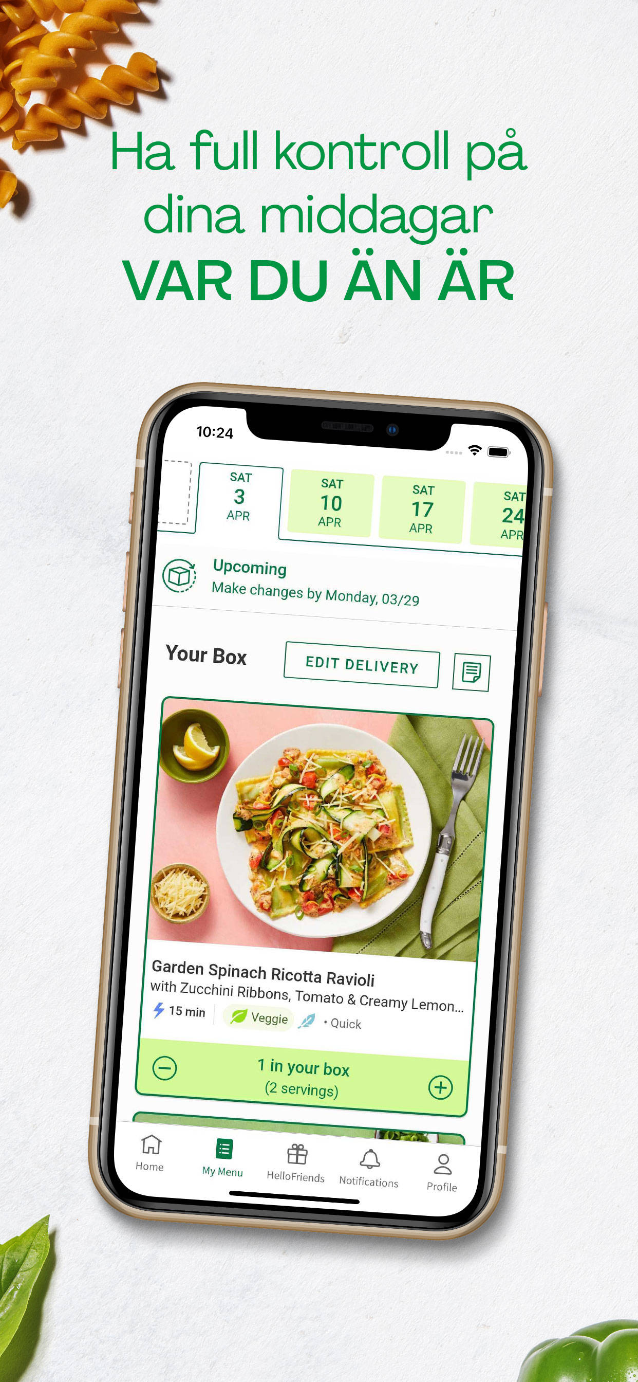 Byt recept, pausa din kasse och spåra dina leveranser var du än är med HelloFresh-appen!