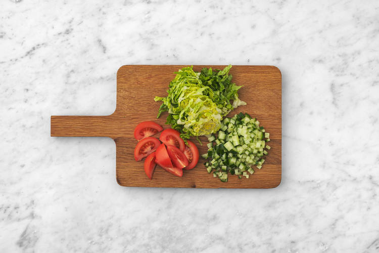 Tärna gurka i 1 cm stora bitar.
