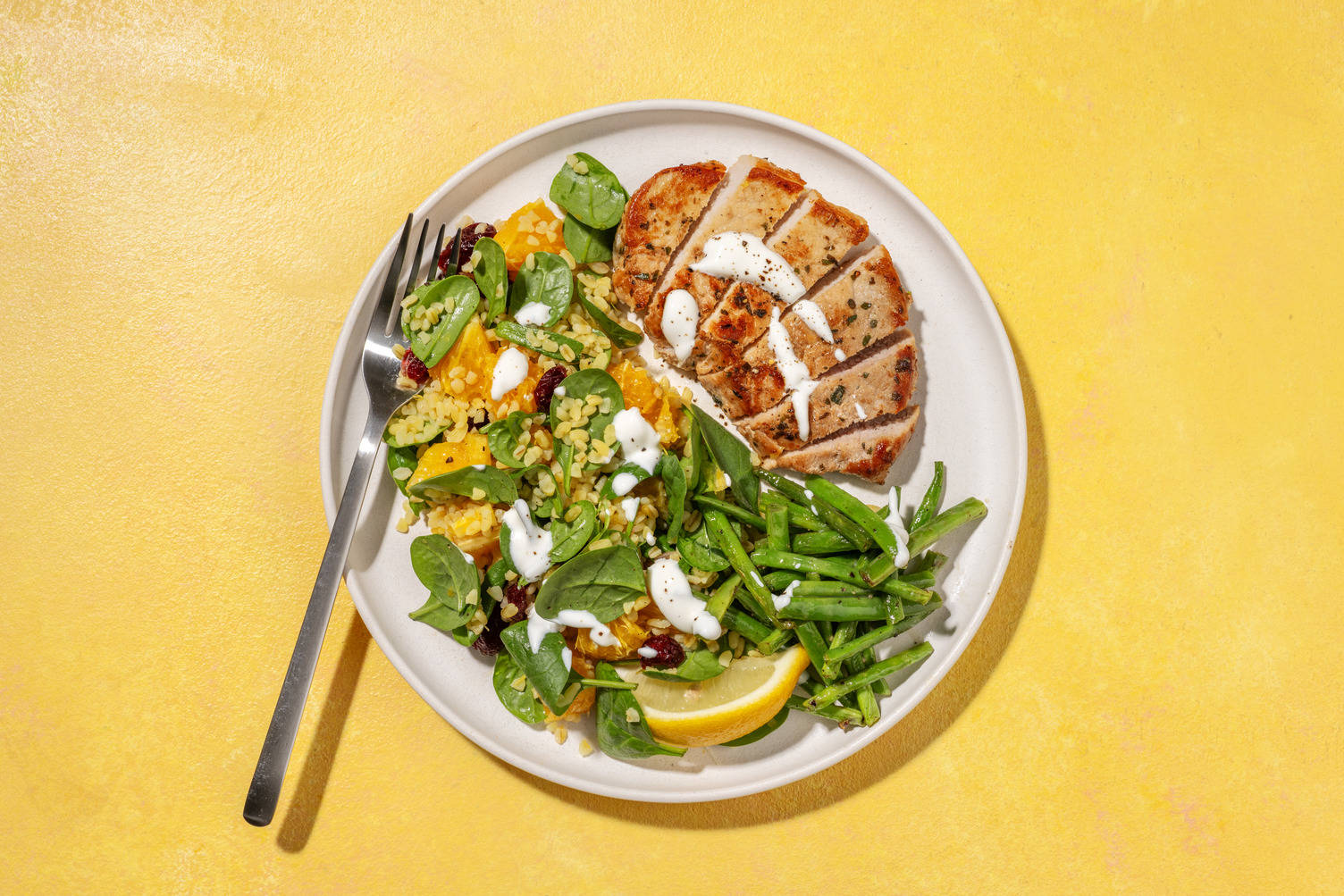 Finhacka spetskål och dill. Skär äpple i 2 cm stora bitar. Dela citron i 4 klyftor. Blanda spetskål, dill och äpple i en salladsskål. Krydda med salt* och peppar*.