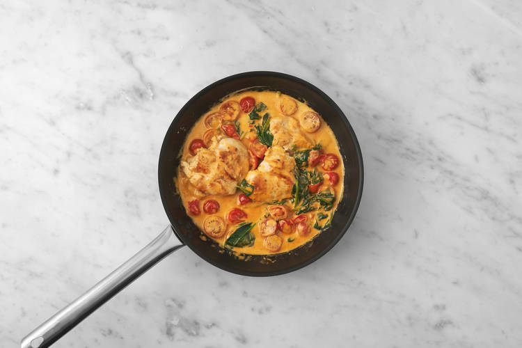 Tillsätt spenat till såsen precis innan servering och rör om tills den mjuknar.