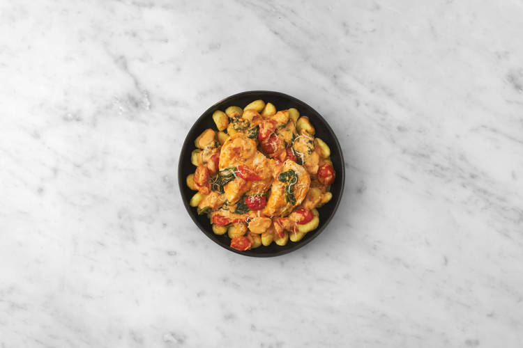 Denna krämiga kycklingrätt med gyllenstekt gnocchi går både supersnabbt att laga och smakar fantastiskt. Kycklingen får sällskap av körsbärstomater, lök och spenat i en smakrik sås med calabresepesto och matlagningsgrädde innan den serveras med gnocchi och toppas med ost och solroskärnor.