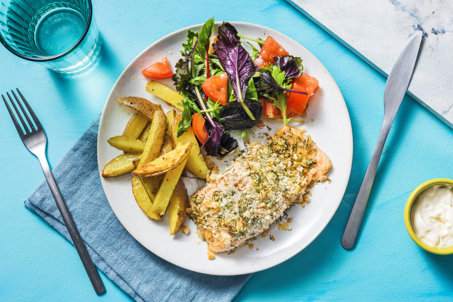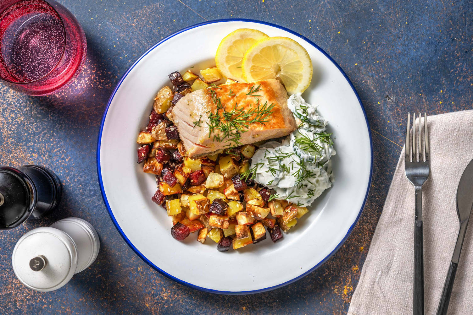 med rostad potatis och fänkålsallad