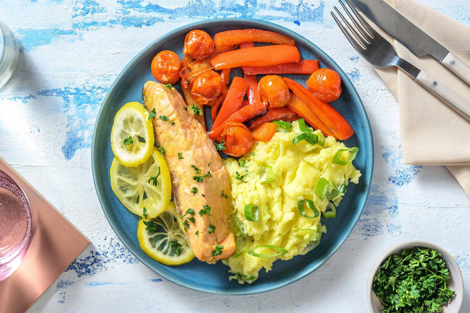 Medelhavslax och gratinerade tomater