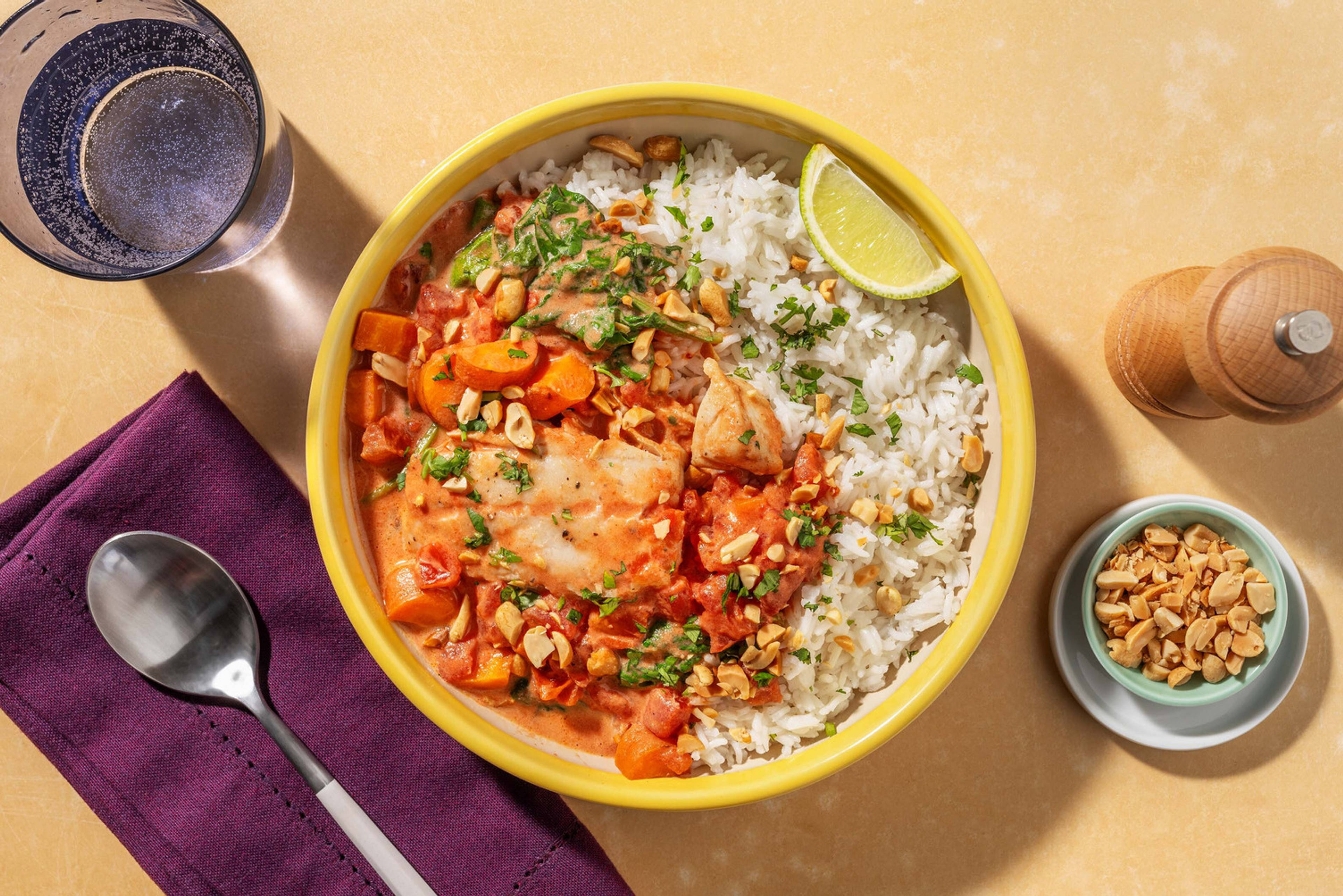 Finhacka eller pressa vitlök. Skiva rödlök tunt. Tärna paprika i 2 cm stora bitar. Skär morot (oskalad) i tunna halvmånar. Skär salladslök i tunna skivor, dela upp de gröna och de vita delarna.