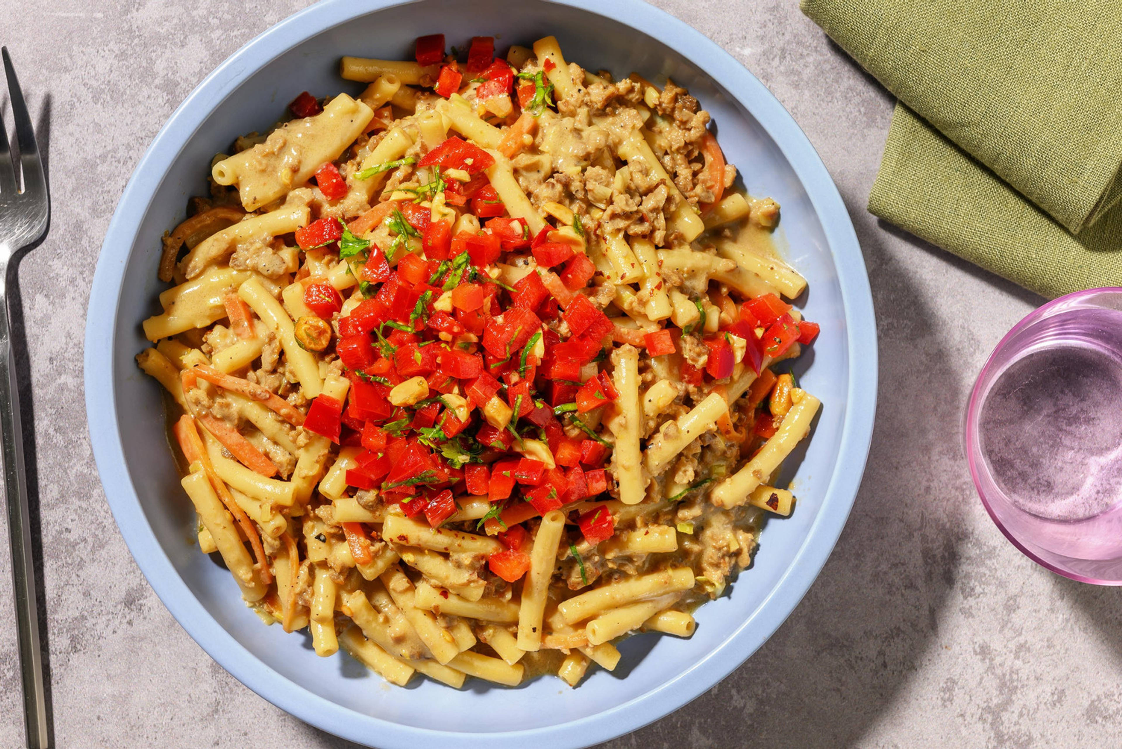 Hetta upp en skvätt olivolja* i en stor stekpanna på medelhög värme. Stek lök, morot, vit salladslök och paprika 3-4 min, eller tills mjuka.